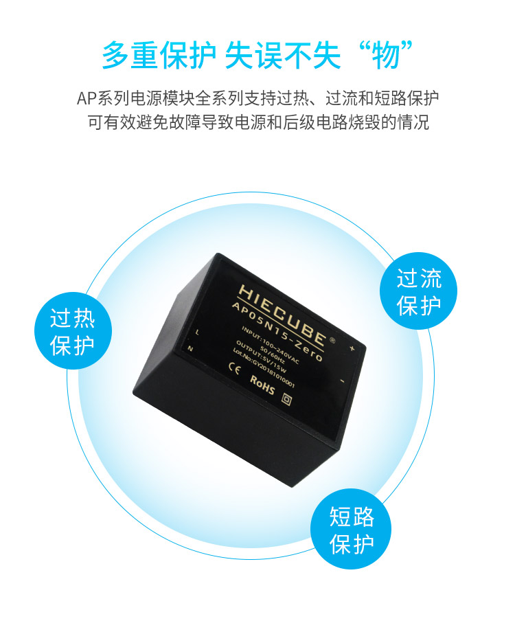 品牌:HIECUBE/高能立方 型號:AP05N15-Zero 隔離耐壓:3000VAC 輸出電壓精度:±1% 電源類別:工業級ACDC電源模塊 模塊質保年限:3年
