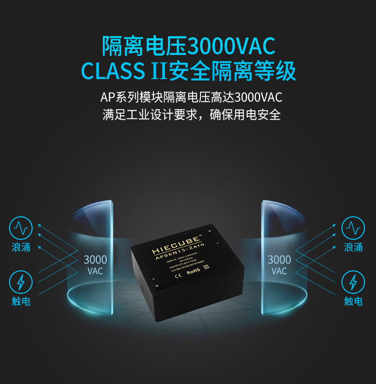 品牌:HIECUBE/高能立方 型號:AP06N15-Zero 隔離耐壓:3000VAC 輸出電壓精度:±1% 電源類別:工業級ACDC電源模塊 模塊質保年限:3年