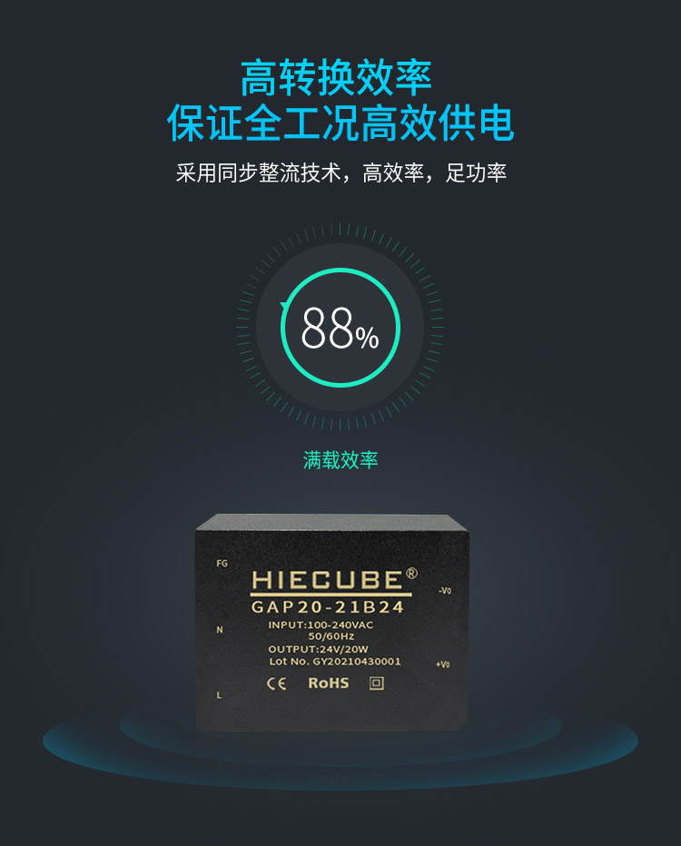 品牌:HIECUBE/高能立方 型號:GAP20-21B24 隔離耐壓:4000VAC 輸出電壓精度:±1% 電源類別:AC-DC模塊電源 模塊質保年限:3年