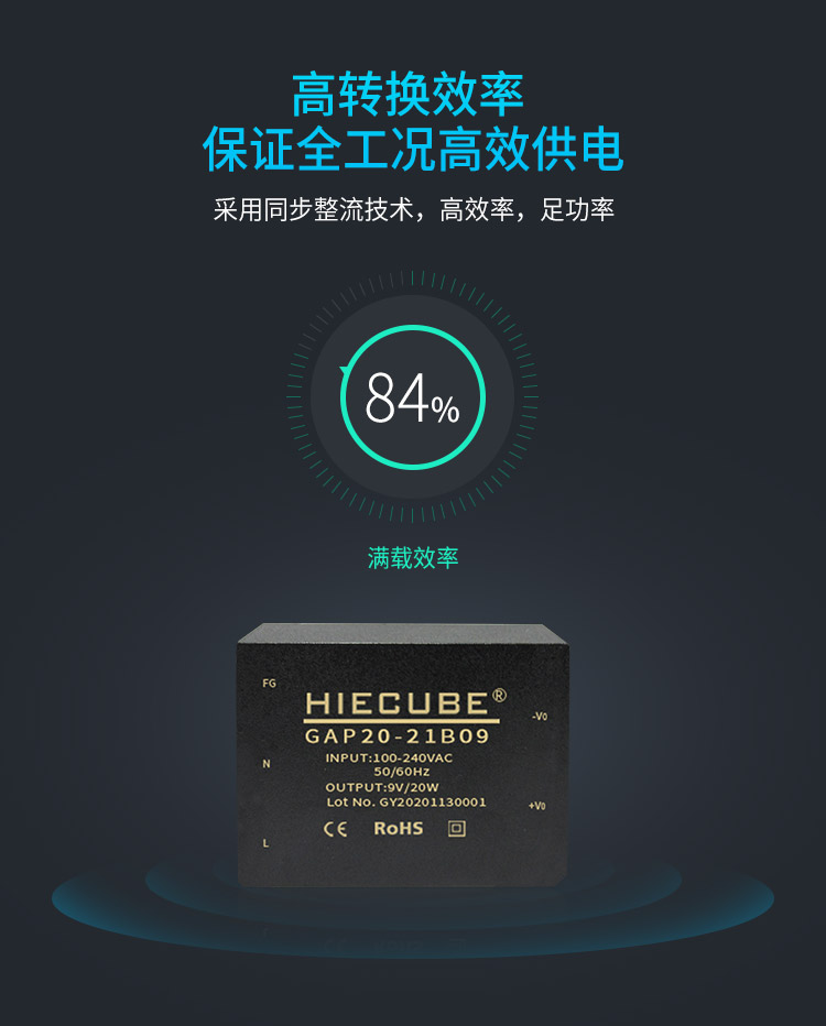 品牌:HIECUBE/高能立方 型號:GAP20-21B09 隔離耐壓:4000VAC 輸出電壓精度:±1% 電源類別:AC-DC電源模塊 模塊質保年限:3年