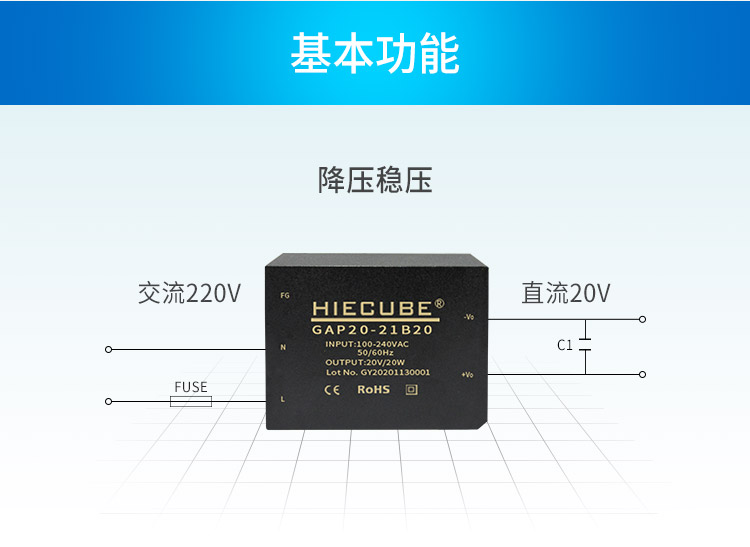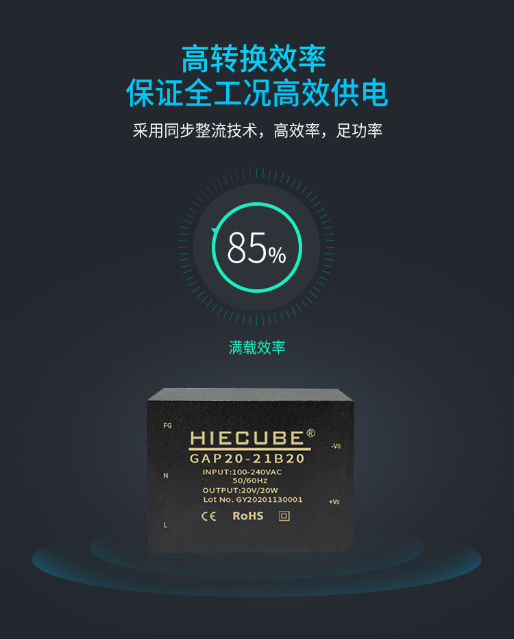 品牌:HIECUBE/高能立方 型號:GAP20-21B20 隔離耐壓:4000VAC 輸出電壓精度:±1% 電源類別:AC-DC電源模塊 模塊質保年限:3年