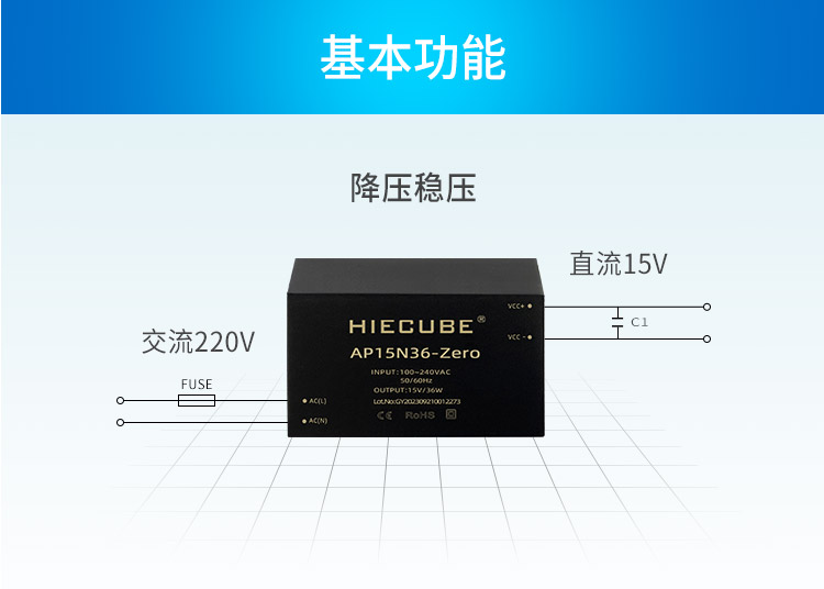品牌:HIECUBE/高能立方 型號:AP15N36-Zero 隔離耐壓:3000VAC 輸出電壓精度:±1% 電源類別:工業級ACDC電源模塊 模塊質保年限:3年