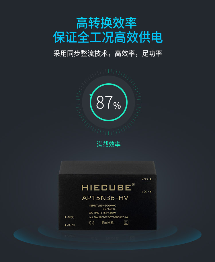 品牌:HIECUBE/高能立方 型號:AP15N36-HV 隔離耐壓:3000VAC 輸出電壓精度:±1% 電源類別:AC-DC電源模塊 模塊質保年限:三年