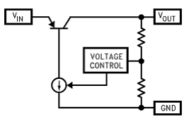當Vout偏小時,基極的電流將增大增加驅動能力,把電壓上拉。當Vout偏大時,基極電流將減小,從而減小輸出,達到穩定電壓的目的。其優點是成本低、噪音小。缺點是效率低、輸出電流小,只能使用在降壓的場合。